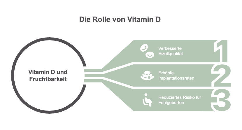 Chronische Entzündungen können die Fruchtbarkeit einschränken. Vitamin D mildert Entzündungsprozesse und sorgt für ein gesünderes Umfeld für die Einnistung und Schwangerschaft [Cyprian et al., 2019].